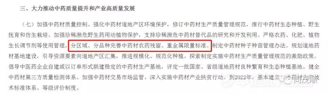 4、國務(wù)院發(fā)文:分區(qū)域、分品種完善中藥材農(nóng)藥殘留、重金屬限量標(biāo)準(zhǔn);建立最嚴(yán)謹(jǐn)標(biāo)準(zhǔn)