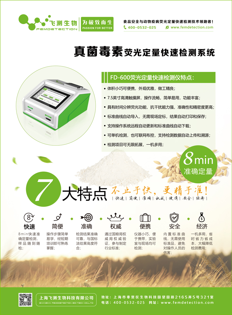 南京微測生物基于領(lǐng)先的熒光定量FPOCT技術(shù)平臺,開發(fā)了真菌毒素?zé)晒舛靠焖贆z測系統(tǒng),其熒光定量快速檢測試紙條結(jié)合了膠體金快速、酶聯(lián)免疫定量以及色譜法準(zhǔn)確的特點(diǎn),可在8min內(nèi)快速準(zhǔn)確定量的測定出真菌毒素的含量。