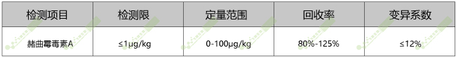 赭曲霉毒素A熒光定量快速檢測(cè)系統(tǒng)性能