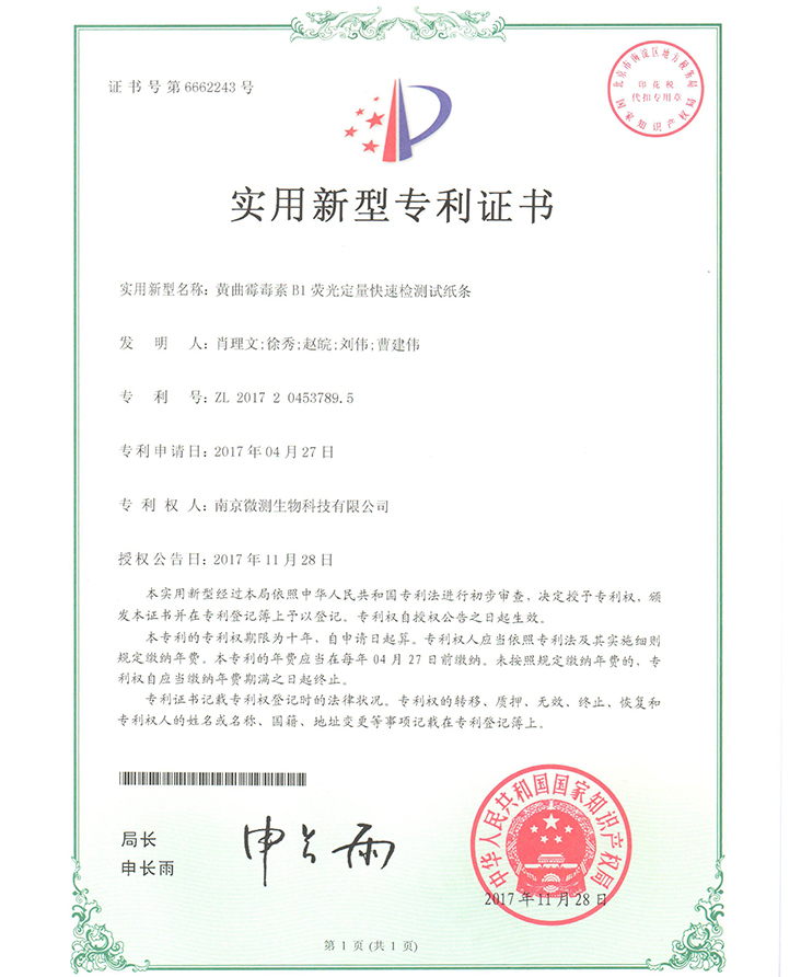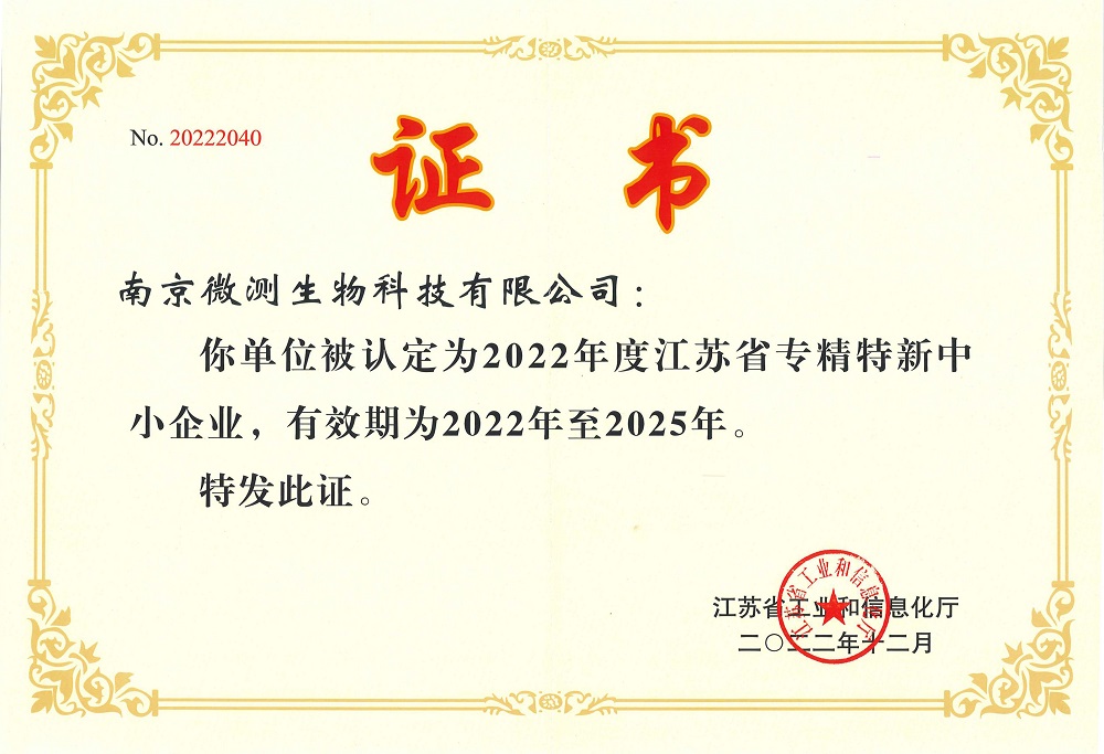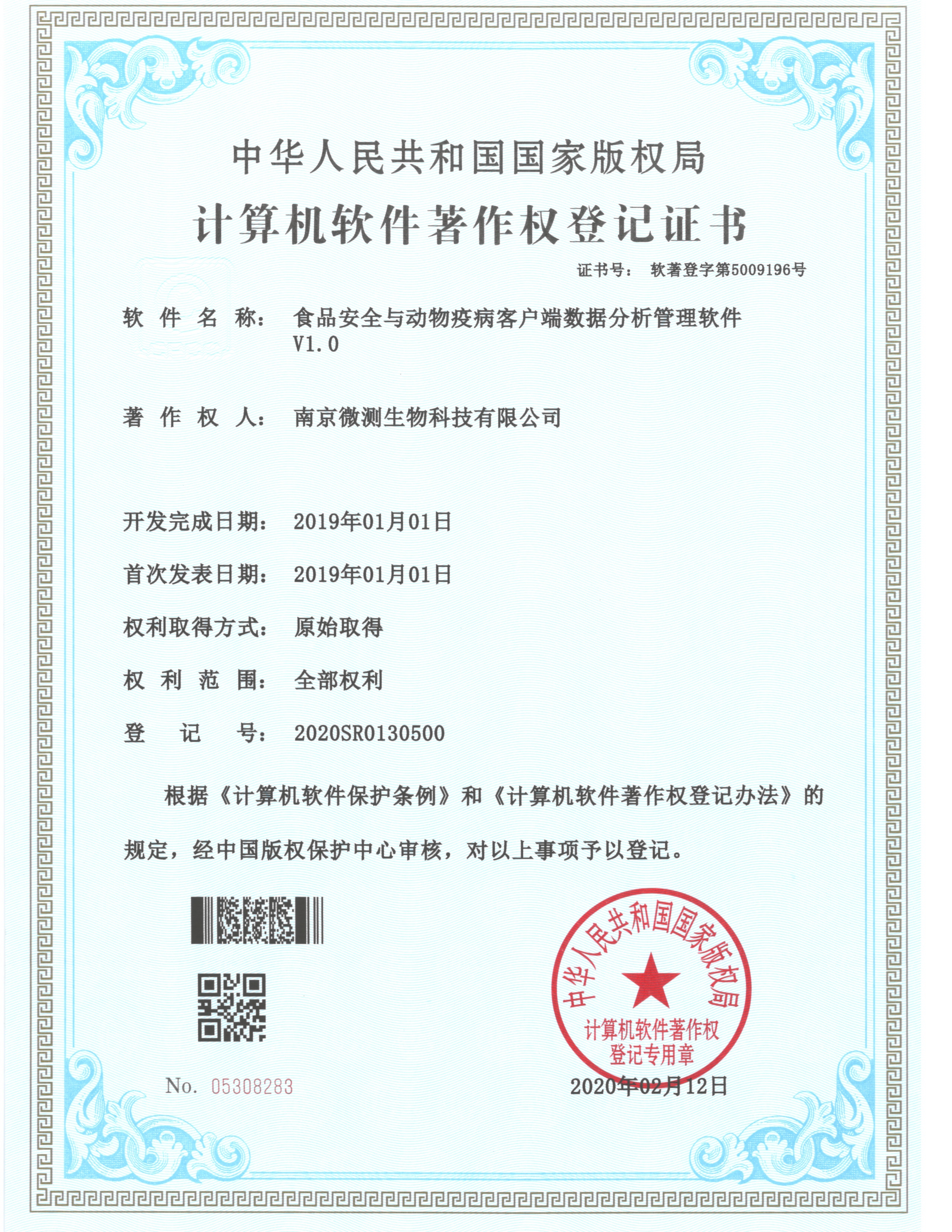 南京微測生物科技有限公司是一家致力于食品安全與動物疾病領(lǐng)域快速檢測技術(shù)和產(chǎn)品開發(fā)的國家級高新技術(shù)企業(yè)。自主開發(fā)的食品安全熒光定量FPOCT快速檢測技術(shù)平臺,具有靈敏度高、定量范圍寬、準(zhǔn)確度高、穩(wěn)定性強(qiáng)、操作快速簡便等優(yōu)點(diǎn),正逐步替代膠體金試紙條和酶免試劑盒等傳統(tǒng)快速檢測產(chǎn)品,引導(dǎo)國內(nèi)食品安全和動物疾病快速檢測從粗略定性到準(zhǔn)確定量的升級換代。公司非常重視知識產(chǎn)權(quán)的保護(hù),目前已申請專利、軟著等20余項(xiàng),承擔(dān)江蘇省創(chuàng)新基金科研項(xiàng)目一項(xiàng),榮獲“江蘇省民營科技企業(yè)”和“國家高新技術(shù)企業(yè)”稱號。